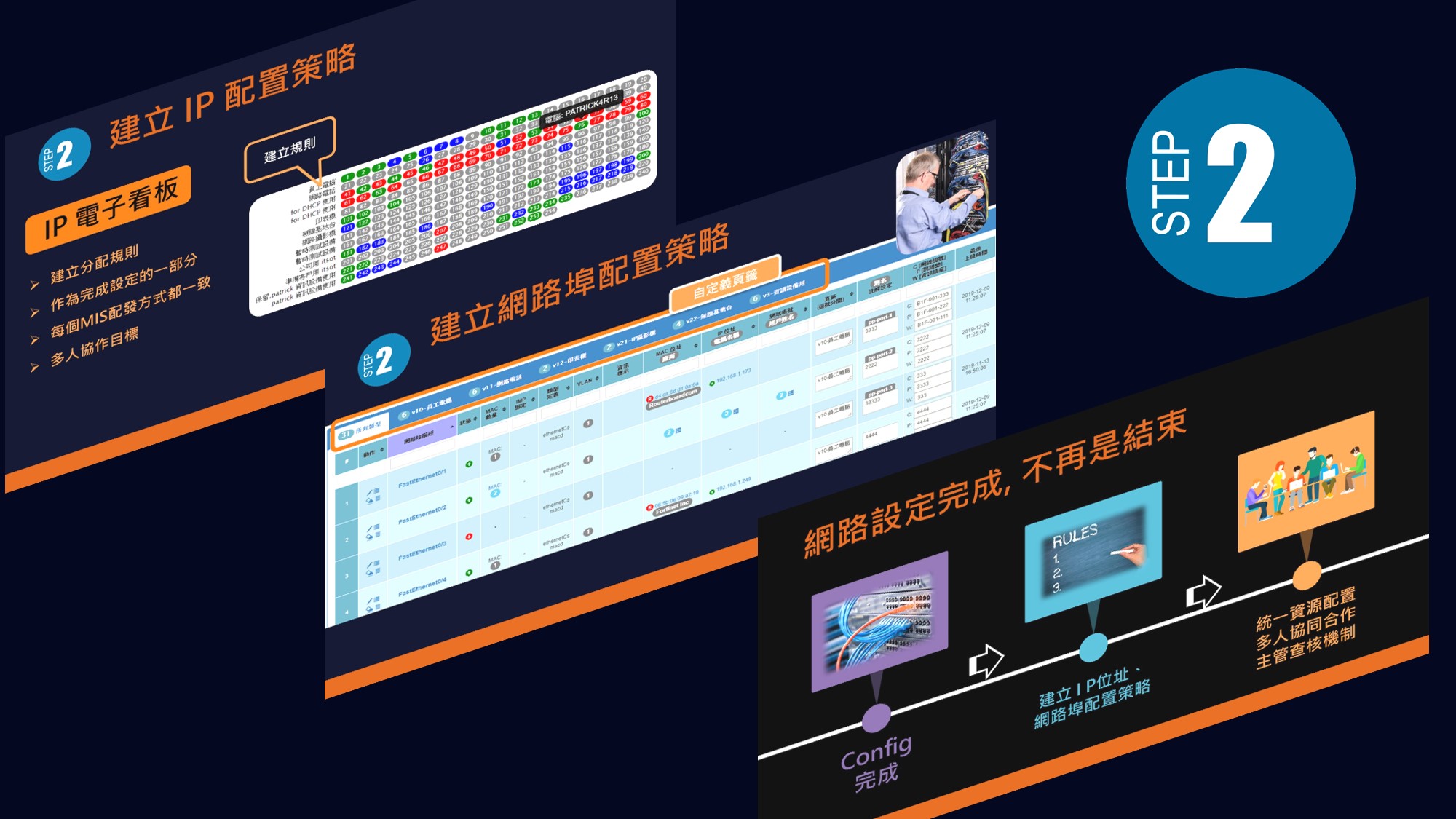 當新設備要上線到內部網路,如何為其選擇所需IP位址、網路埠編號? 如果沒有配置策略,那麼網管人員之間就無法協同管理,因為每個人配置結果都不一樣,為了好管理與不會亂,網路總是同一個人管,可能十多年過去了,還是同一個人在管IP與網路埠,其實這可以透過我們的配置策略來完美解決這個問題。
