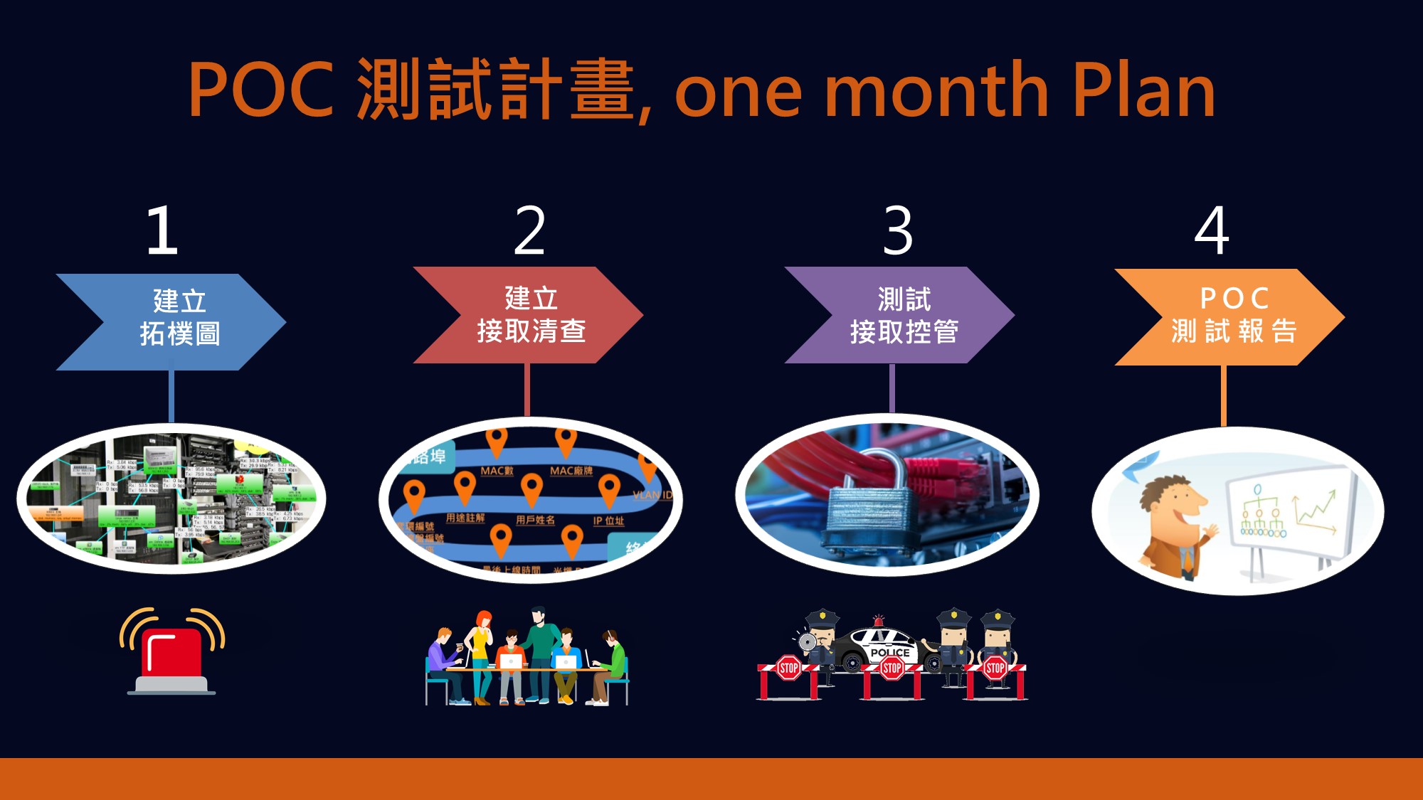 我們提供從基本監控到進階網路控管機制, 協助客戶導入完整的網管方案, 包括網路設備監控管理、入網新機註冊 SOP、主管查核機制、以及網路資安控管功能等, 誠心推薦給您, 一套您可以仰賴的每日維運管理系統。